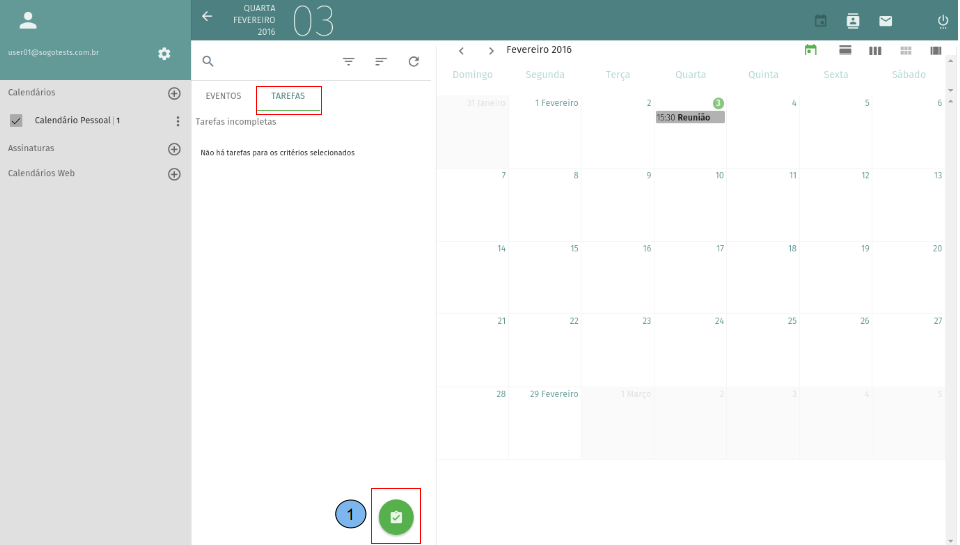 Ao se inscrever no calendário de outro usuário você terá acesso aos eventos e tarefas do mesmo. As permissões disponíveis vai depender do nível de restrição que o usuário (dono do calendário) definiu no mesmo. (1) Acesse Calendário. (2) Em “Assinatura” clique no sinal de “+”.