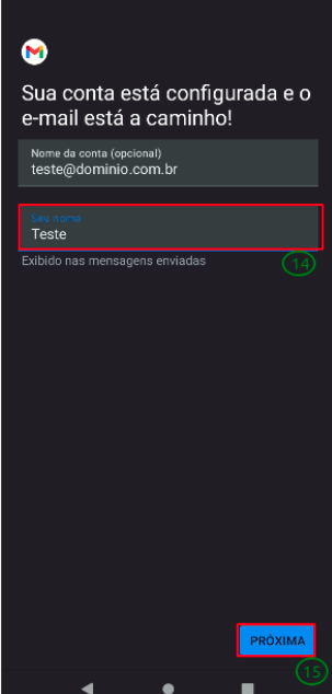 Defina o Nome para a conta e clique em Próxima. A conta foi Configurada.