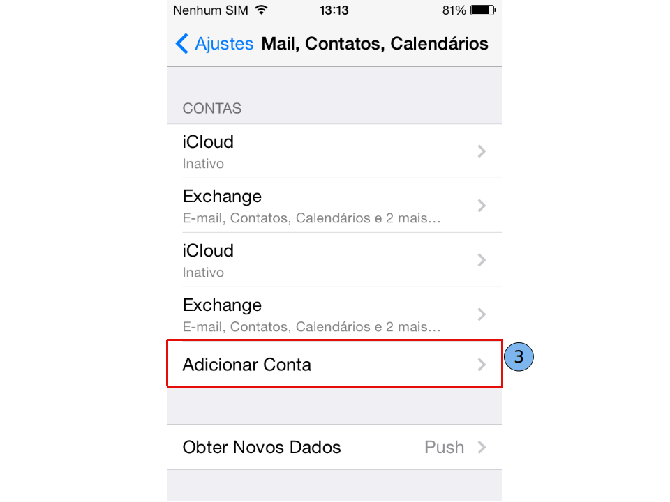 Selecione "Mail, Contatos, Calendários" (2).